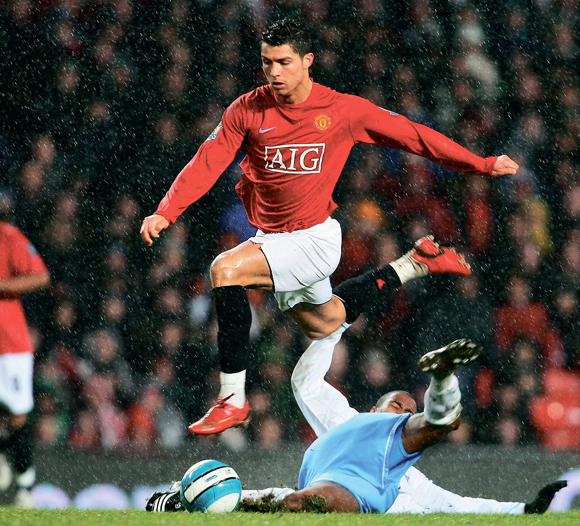 Мать-кухарка (теперь она называет сына не иначе как «дар Божий», а он запрещает ей ходить на свои матчи, потому что однажды она так распереживалась на трибунах, что упала в обморок и лишилась зуба). Отец-алкоголик (который внес в жизнь сына всего один существенный вклад, назвав его в честь своего кумира Рональда Рейгана). Первые голы во дворе – самодельным мячом, сшитым из старых носков. Исключение из школы (бросил стулом в учителя). Отъезд за 1500 км в огромный по сравнению с родным островом столичный Лиссабон. Жизнь в общежитии, где он первым приходил в спортзал, а уходил последним. «Манчестер Юнайтед», где восемнадцатилетнему футболисту сразу дали номер 7, когдато принадлежавший Дэвиду Бекхэму. Награды: пять «Золотых мячей», четыре «Золотые бутсы». Рекорды: шесть сезонов подряд лучший бомбардир Лиги чемпионов, единственный футболист в истории, выигравший английскую Премьер-лигу, итальянскую Серию А и испанскую Примеру. 777 голов (на момент ухода этого номера в печать).
