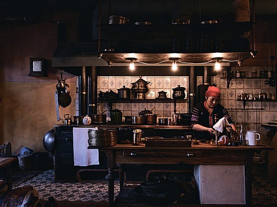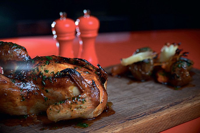 Темные стены, черная мебель, приглушенный свет. Яркие пятна желтых, оранжевых, синих тарелок и красные лакированные столешницы. Театральная обстановка готовит к главному аттракциону – кухне Георгия Трояна. Один из лучших молодых шефов страны использует традиционные гастрономические техники (всю еду здесь готовят в двух больших русских печах) и ловко расставляет акценты, чтобы придать новое измерение привычным продуктам – даже банальный тыквенный суп становится открытием. Авторская кухня в полном смысле этого слова.