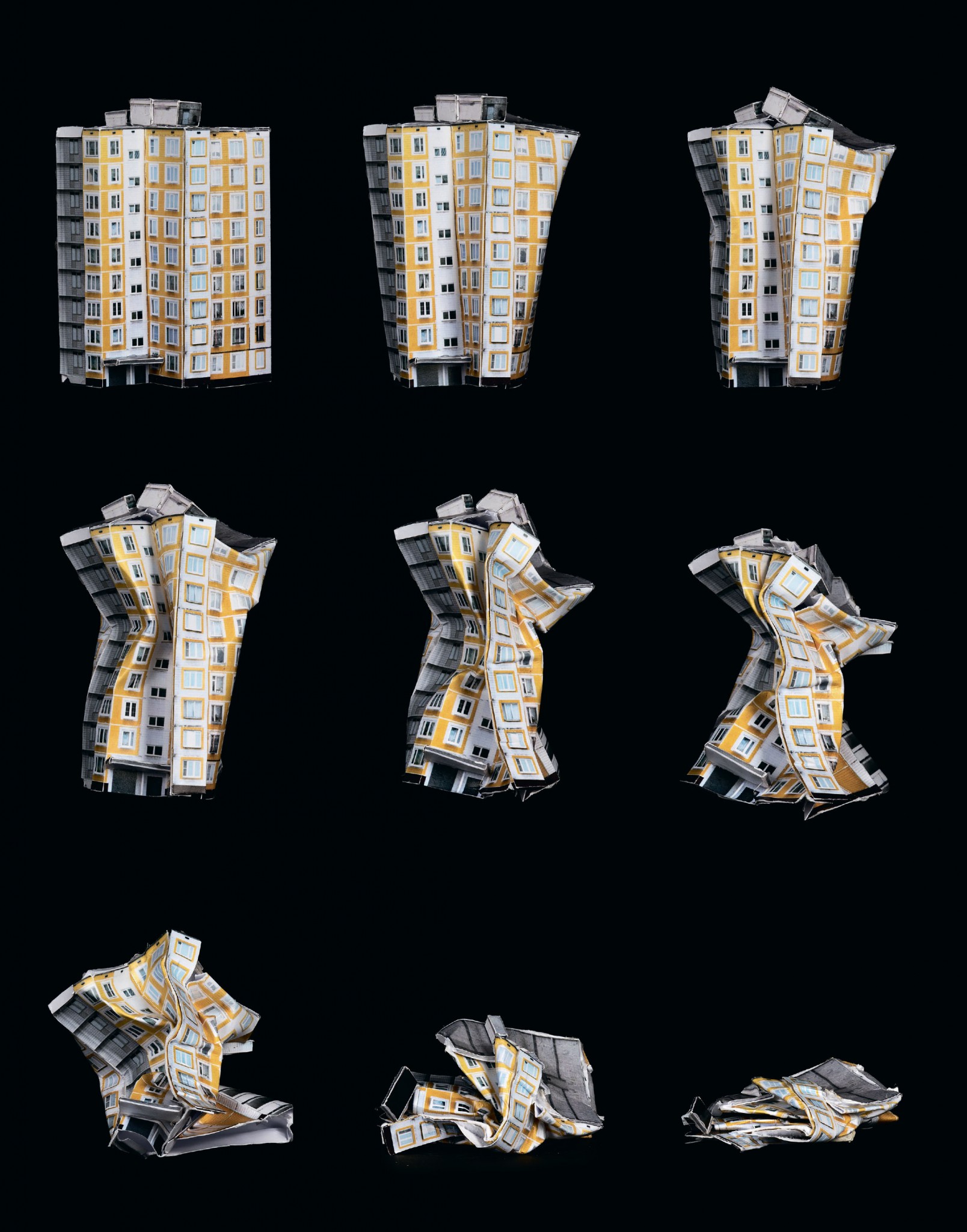 5:01 В соседнем доме осыпаются лестничные пролеты, стены покрываются трещинами. Люди в панике бегут на улицу и собираются на детской площадке.