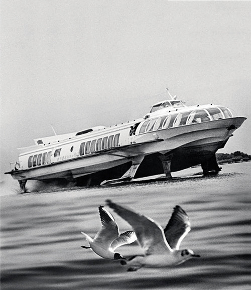 В 1950-е с появлением первых сверхзвуковых самолетов транспорт будущего начали представлять похожим на них: с прозрачными каплями кабин и воздухозаборниками. Так выглядят, например, концепт-кары Алекса Тремулиса для Ford и советские речные суда на подводных крыльях начала 1960-х – «Метеор» и «Чайка».