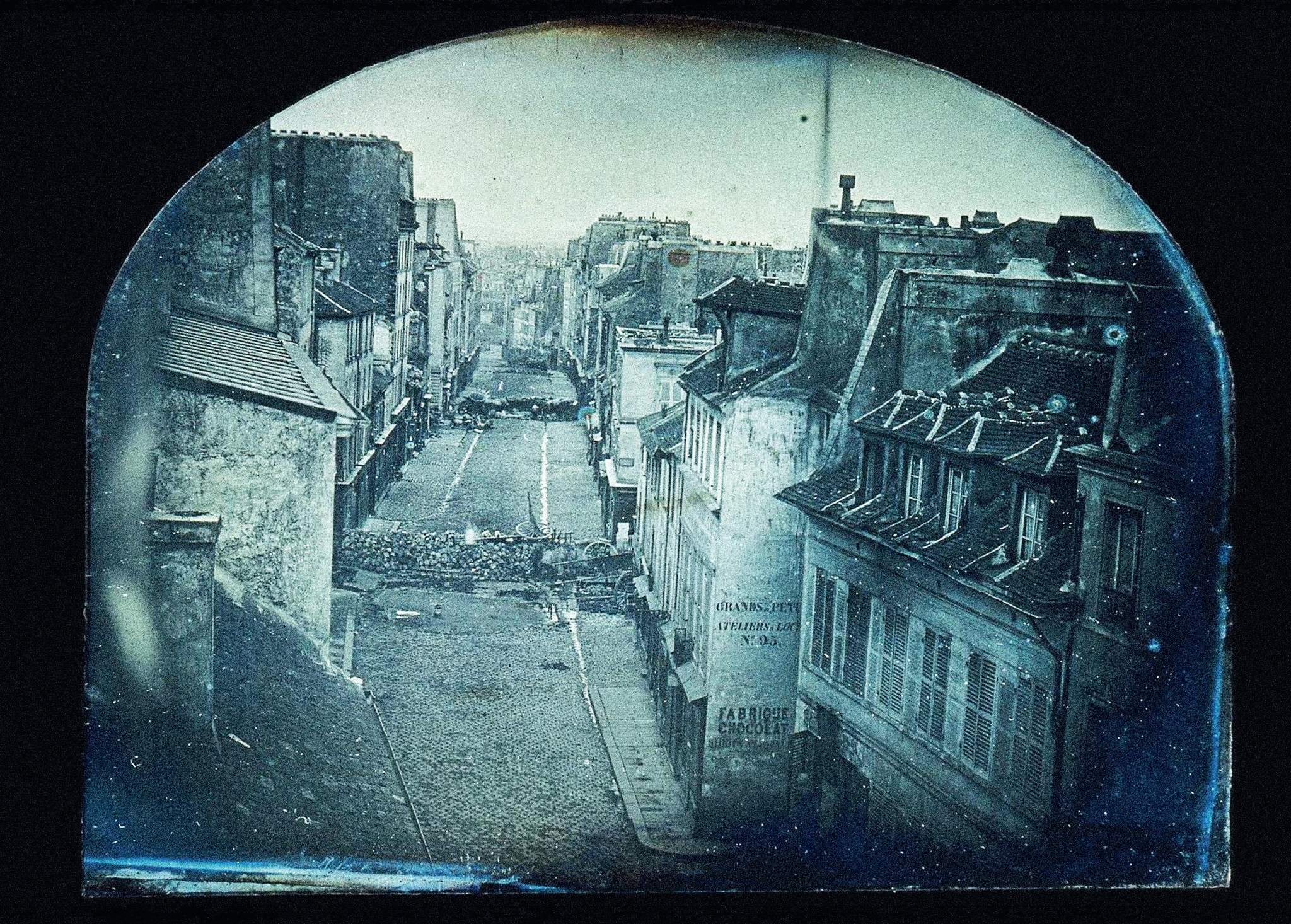 Фотография «Баррикады на улице Сен-Мор» (Barricades on rue Saint-Maur), сделанная в разгар июньского восстания 1848 года в Париже, стала первым снимком, опубликованным в газетах.