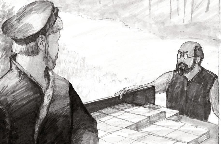 Бейлис пересчитывает кирпичи в повозке, готовой под отправку.