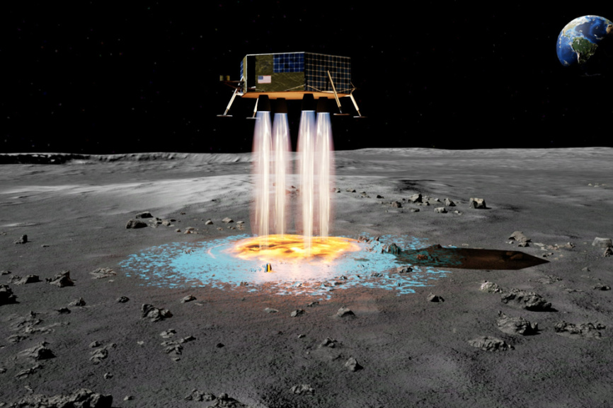 Masten Space Systems работает над тем, чтобы защитить будущие лунные посадочные аппараты от реголита, выбрасываемого их двигателями при приземлении, путем впрыскивания керамических частиц глинозема в шлейф ракетного двигателя, чтобы склеить лунную пыль и создать свои собственные посадочные площадки непосредственно перед приземлением.
