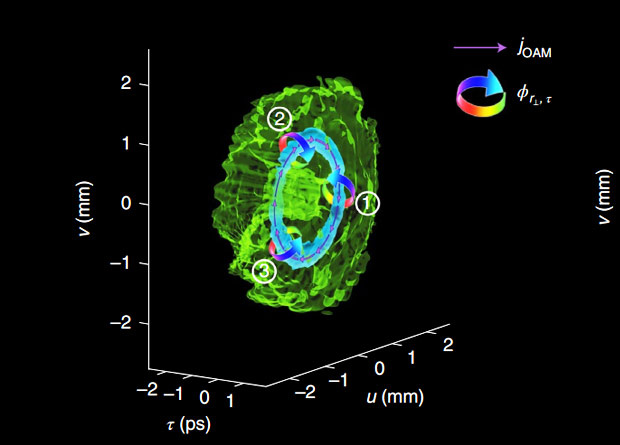 Физики экспериментально получили устойчивый тороидальный вихрь света, подобный кольцам сигаретного дыма. Для этого ученые конформно преобразовали решение уравнения Максвелла в виде трубки света в решение, которое описывает тороидальный вихрь, а затем использовали это преобразование на практике. Статья опубликована в Nature Photonics.