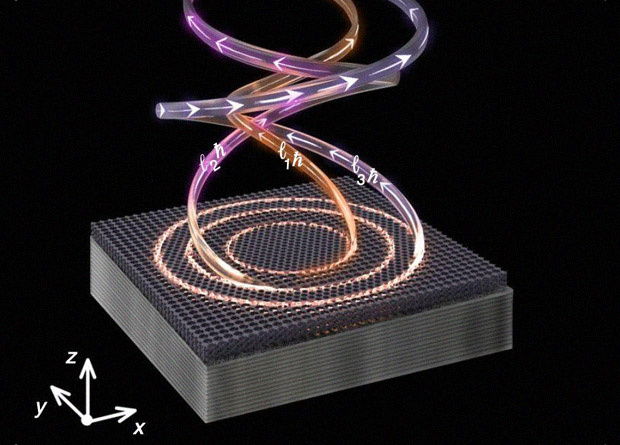 Физикам удалось поместить три спиральных световых луча друг в друга, воспользовавшись квантовым эффектом Холла. Для этого они вытравили точечный кольцевой рисунок из полупроводника, а потом поместили его на магнитную подложку. Разработанный авторами метод в перспективе позволит превысить существующий порог передачи информации за счет создания нескольких независимых каналов в одном световом луче. Статья опубликована в Nature Physics.
