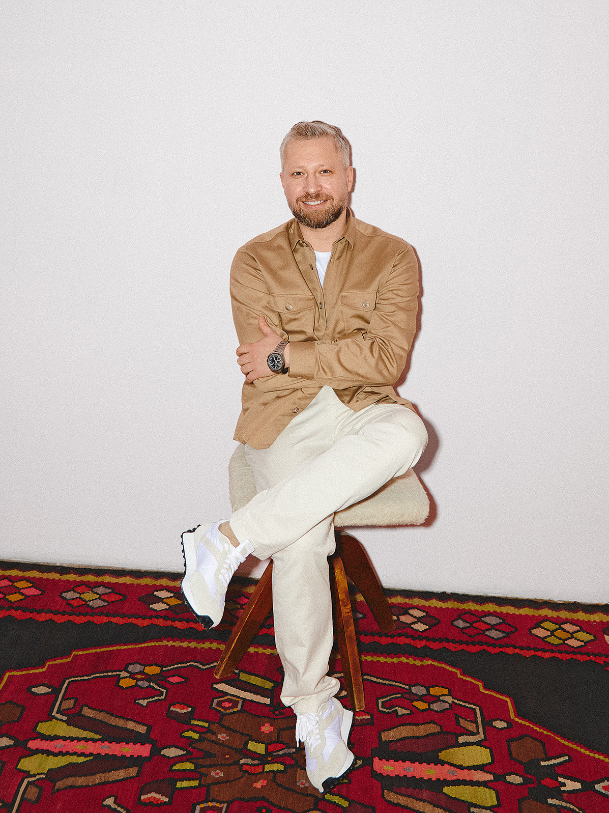 Рубашка и брюки Boggi Milano, кроссовки Doucal’s, часы Zenith DEFY Extreme