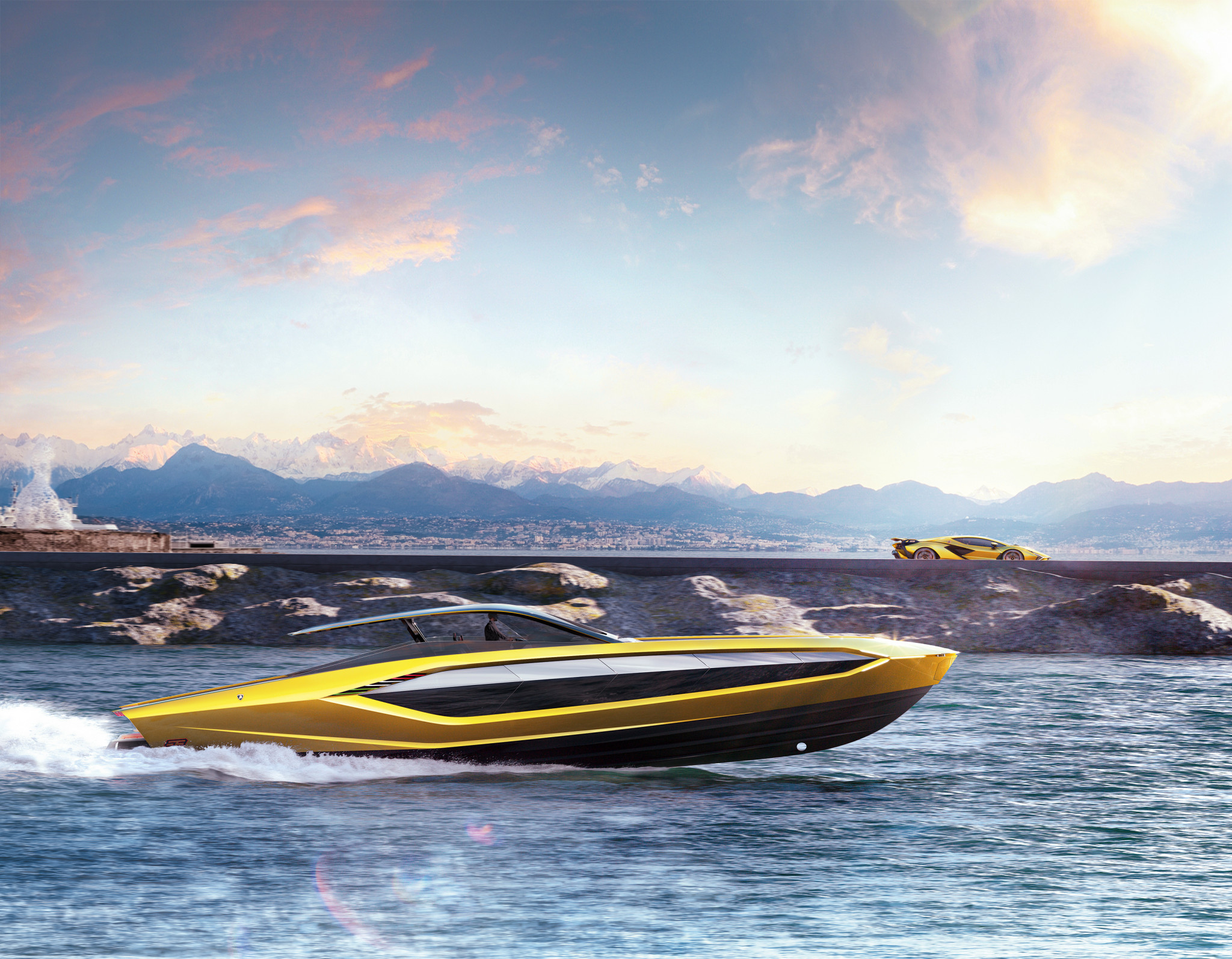 Задача, поставленная в самом начале и последовательно реализованная на всех этапах проекта, — переосмысление общих черт обоих брендов, начиная с концепции дизайна и заканчивая техническими характеристиками, способными обеспечить невероятную скорость. Проект возник, когда основатель и генеральный директор The Italian Sea Group Джованни Костантино встретился со Стефано Доменикали, генеральным директором Automobili Lamborghini. Взаимопонимание возникло мгновенно: они сразу же решили сотрудничать для реализации этого амбициозного проекта. Главной целью стало желание перенести экстраординарные эмоции и ощущения от вождения суперкара Lamborghini на моторную яхту.