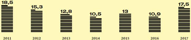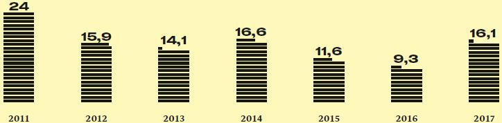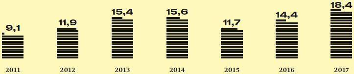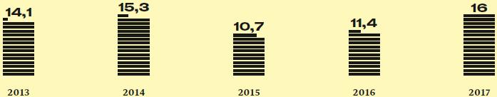 Цифра Чистая прибыль «Сибура» по МСФО в 2016 году выросла в 17,4 раза по сравнению с 2015 годом и составила 113 млрд рублей.