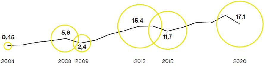 - $17,1 млрд (Состояние уменьшилось по сравнению с 2019 годом)