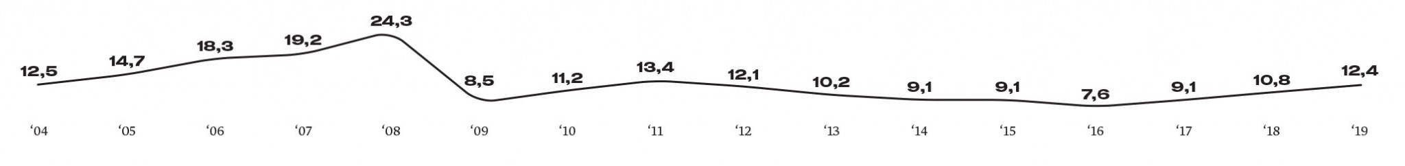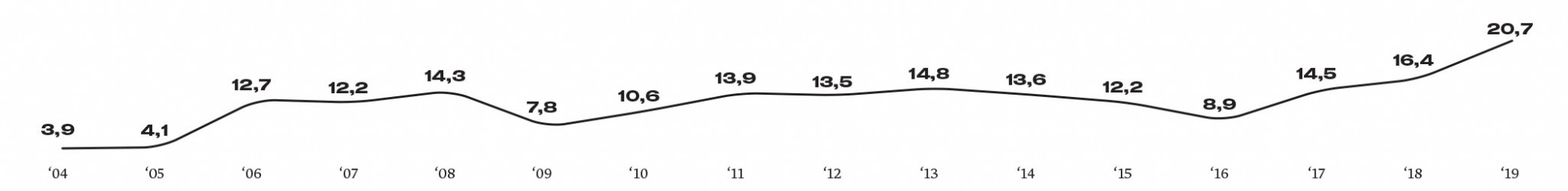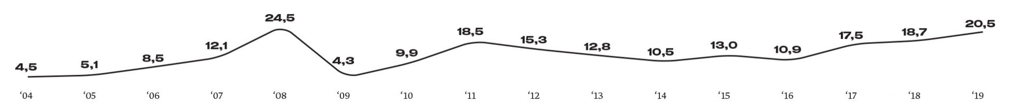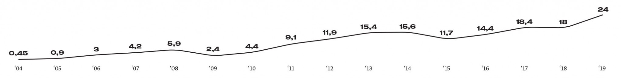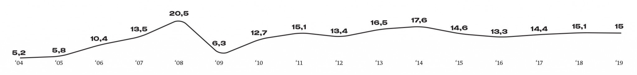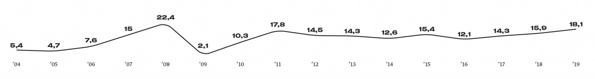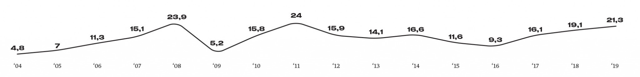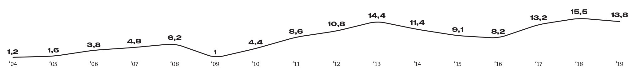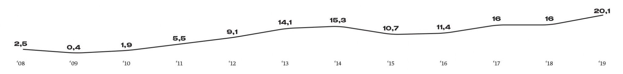 СОБЫТИЕ В декабре 2018 года «Новатэк» запустил третью линию проекта «Ямал СПГ». Мощность всего комплекса по сжижению газа стоимостью $27 млрд составляет 16,5 млн т в год. Доля «Новатэка» на рынке СПГ приблизилась к 5%.