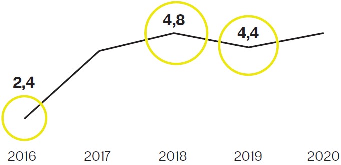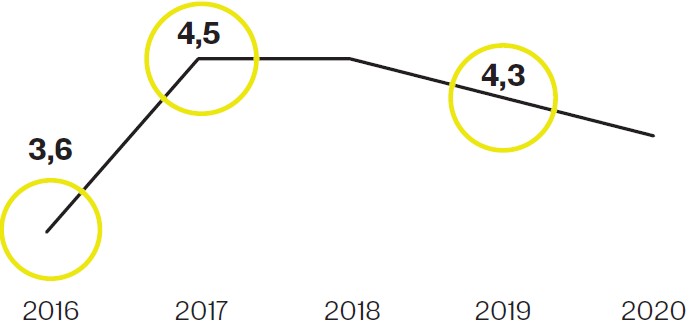 - $4,5 млрд (Состояние не изменилось по сравнению с 2019 годом)