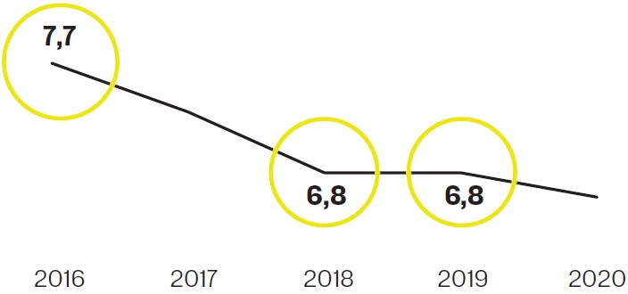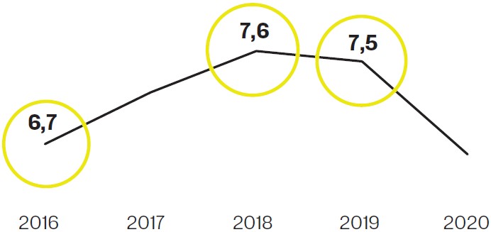 - $7,3 млрд (Состояние уменьшилось по сравнению с 2019 годом)