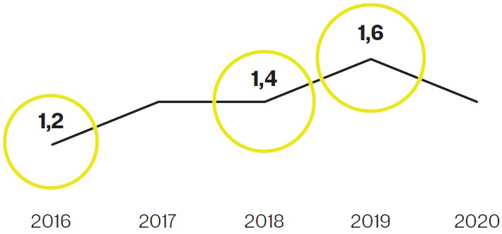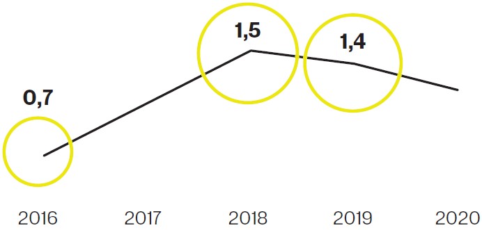 - $1,4 млрд (Состояние не изменилось по сравнению с 2019 годом)