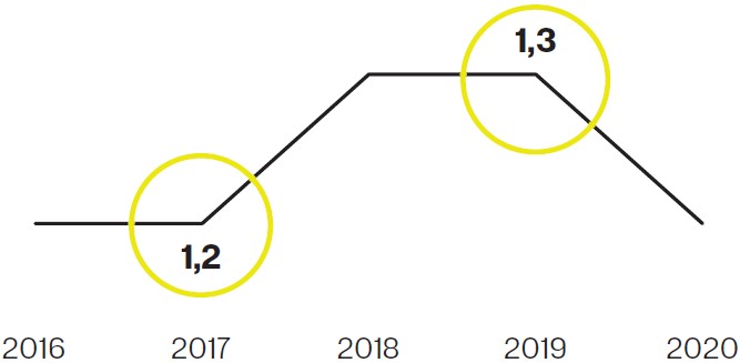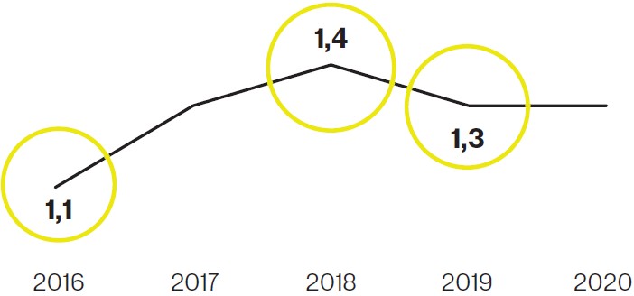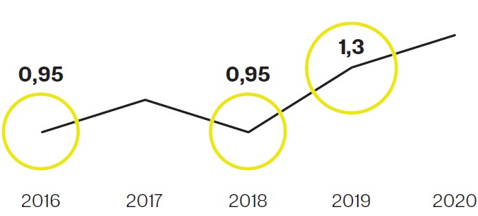 - $1,3 млрд (Состояние не изменилось по сравнению с 2019 годом)