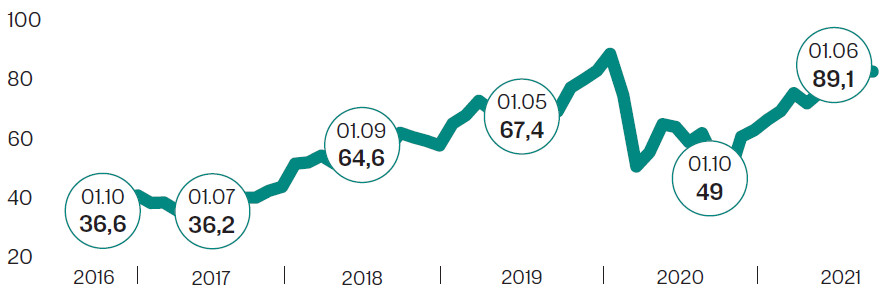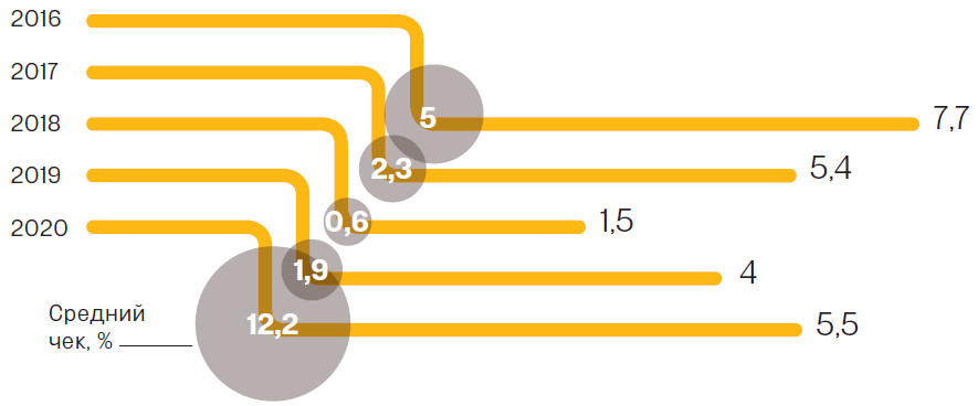 - 12,8% составляет доля компании на рынке продуктовой розницы в 2020 году