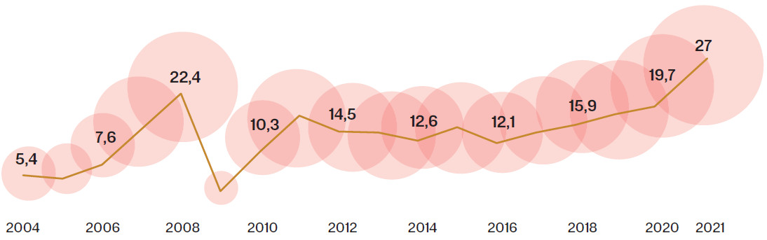- $27 млрд (Состояние увеличилось по сравнению с 2020 годом)