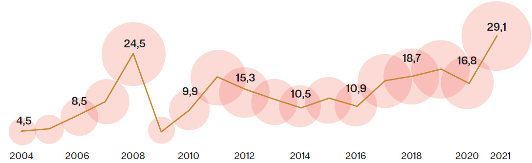 - $29,1 млрд (Состояние увеличилось по сравнению с 2020 годом)