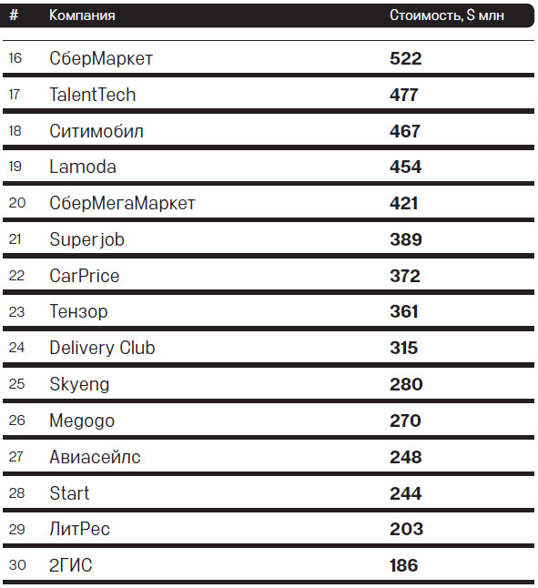 Forbes публикует очередной рейтинг 30 самых дорогих компаний Рунета не в самый удачный для них момент. Начало 2022 года было трудным для инвесторов во всем мире. Индекс широкого рынка S&P 500 снизился на 8% с исторического максимума, достигнутого на торгах 3 января, а высокотехнологичный индекс Nasdaq-100 упал на 13% с ноября 2021 года. Акции российских интернет-компаний за последние три месяца потеряли в цене около 50%. Больше остальных пострадали маркетплейсы, агрегаторы такси и сервисы доставки еды. На обвал российских бумаг повлияла повышенная волатильность в регионе (индекс MSCI Russia снизился примерно на 25%), падение индекса Nasdaq-100, планы ФРС по свертыванию программы количественного смягчения и перспективы роста инфляции, следует из аналитической записки банка Goldman Sachs от 21 января 2022-го. В США более 220 крупных публичных компаний (капитализация каждой не менее $10 млрд) подешевели минимум на 20% с исторических максимумов. В этом списке Netflix, Twitter, Disney и Salesforce. Упал интерес инвесторов и к другим бенефициарам пандемии — акции Zoom торгуются на уровне мая 2020 года, а бумаги производителя фитнес-оборудования для дома Peloton стоят ниже их оценки в ходе IPO в сентябре 2019 года. То же самое происходит и с российскими компаниями: если год назад Ozon стоил более $10 млрд, то теперь его капитализация упала в два раза, до $4,7 млрд. Снизилась оценка и крупнейшего в России маркетплейса Wildberries. Подешевели агрегатор такси «Ситимобил» и сервис доставки еды из ресторанов Delivery Club. Сервис по аренде и продаже недвижимости «Циан», который инвесторы во время IPO в ноябре 2021-го оценили в $1,1 млрд, к 2 февраля подешевел до $630 млн.