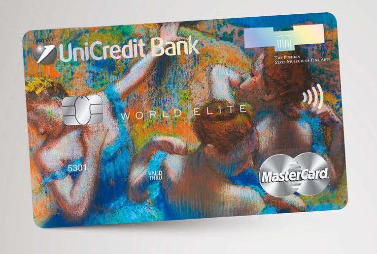 Вместе с новой картой World Elite Mastercard ЮниКредит Банка мировые шедевры становятся ближе в том числе потому, что не так часто встречаются карты, в дизайне которых используются произведения искусства. А этот банковский шедевр выпущен с изображением картины художника-импрессиониста Эдгара Дега «Голубые танцовщицы» из коллекции ГМИИ им. А.С. Пушкина. Известный коллекционер и меценат Сергей Щукин купил ее за 60 000 франков — крупную для того времени сумму. Однако его целью не был заработок на этом приобретении: как известно, его коллекция стала бесценным подарком