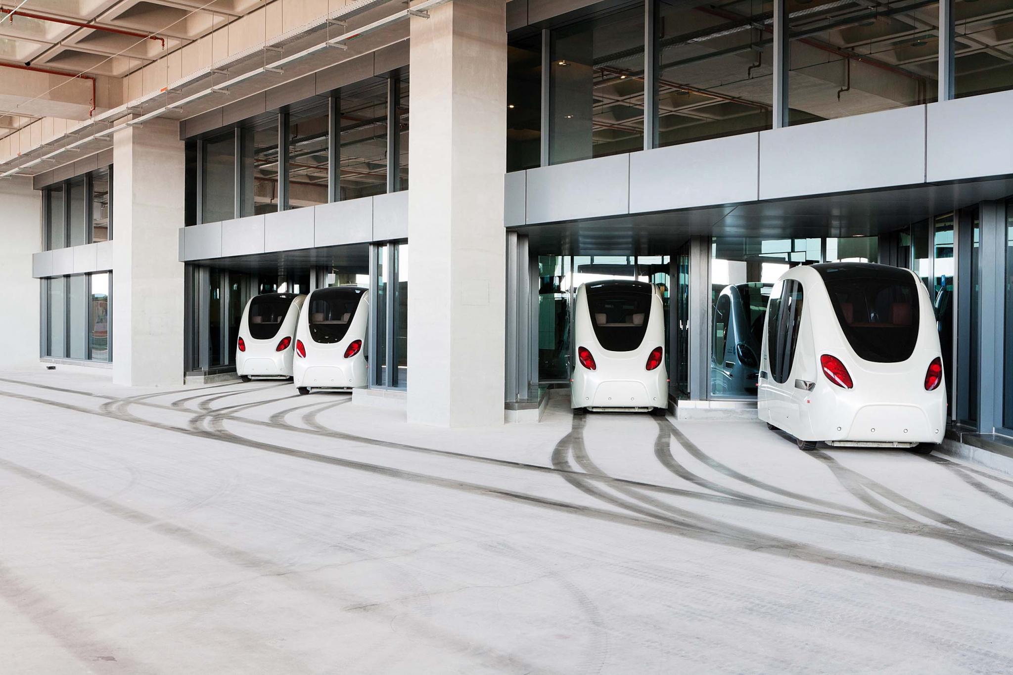 В сложившейся городской среде это сложно. Но может, начать с чистого листа? В 2006 году на площадке в 6 кв. км рядом с аэропортом Абу-Даби с нуля началось строительство «зеленого» города Масдар. Государственная инвестиционная компания пообещала вложить $22 млрд, предполагалось, что в городе с «нулевыми» вредными выбросами в окружающую среду будут жить 50 000 человек, а 40 000 ежедневно станут приезжать сюда на работу. Одна из основных особенностей города — полный запрет на автомобили. Перевозку пассажиров и грузов должна была обеспечить, по замыслу проектировщиков, система CyberCab — ее еще называют PRT (Personal Rapid Transit). Это маленькие кабины на 3–6 человек или несколько единиц груза, гибрид трамвая и такси или подобие легкого грузовика, они ездят по выделенным путям без водителей.