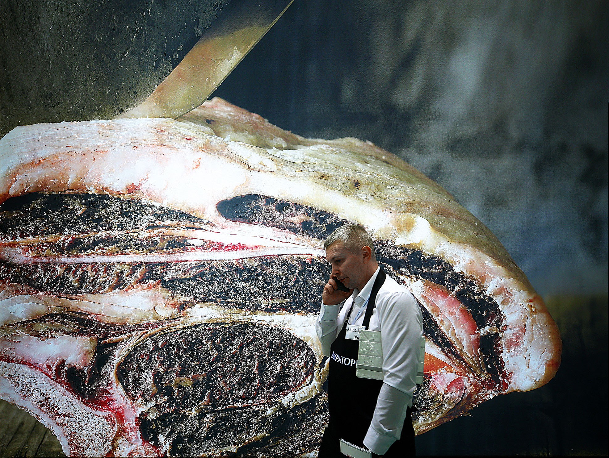 Неподалеку от деревни Леденево Брянской области дорога упирается в шлагбаум с аккуратной караульной будкой и крепким охранником в камуфляже. За будкой в сотне метров светло-серое, похожее на аэродромный ангар здание, а рядом прямо на снегу толчется несколько сотен мощных антрацитно-черных быков породы абердин-ангус. Вдоль дороги от бычьей фермы «Леденево» тянутся поля, огороженные рядами колючей проволоки. По одну сторону от асфальта ходит стадо быков, по другую — сложены горы тюков и рулонов сена. А на асфальте работает бригада дорожников. Латают ямы, выбитые мощной мираторговской техникой.