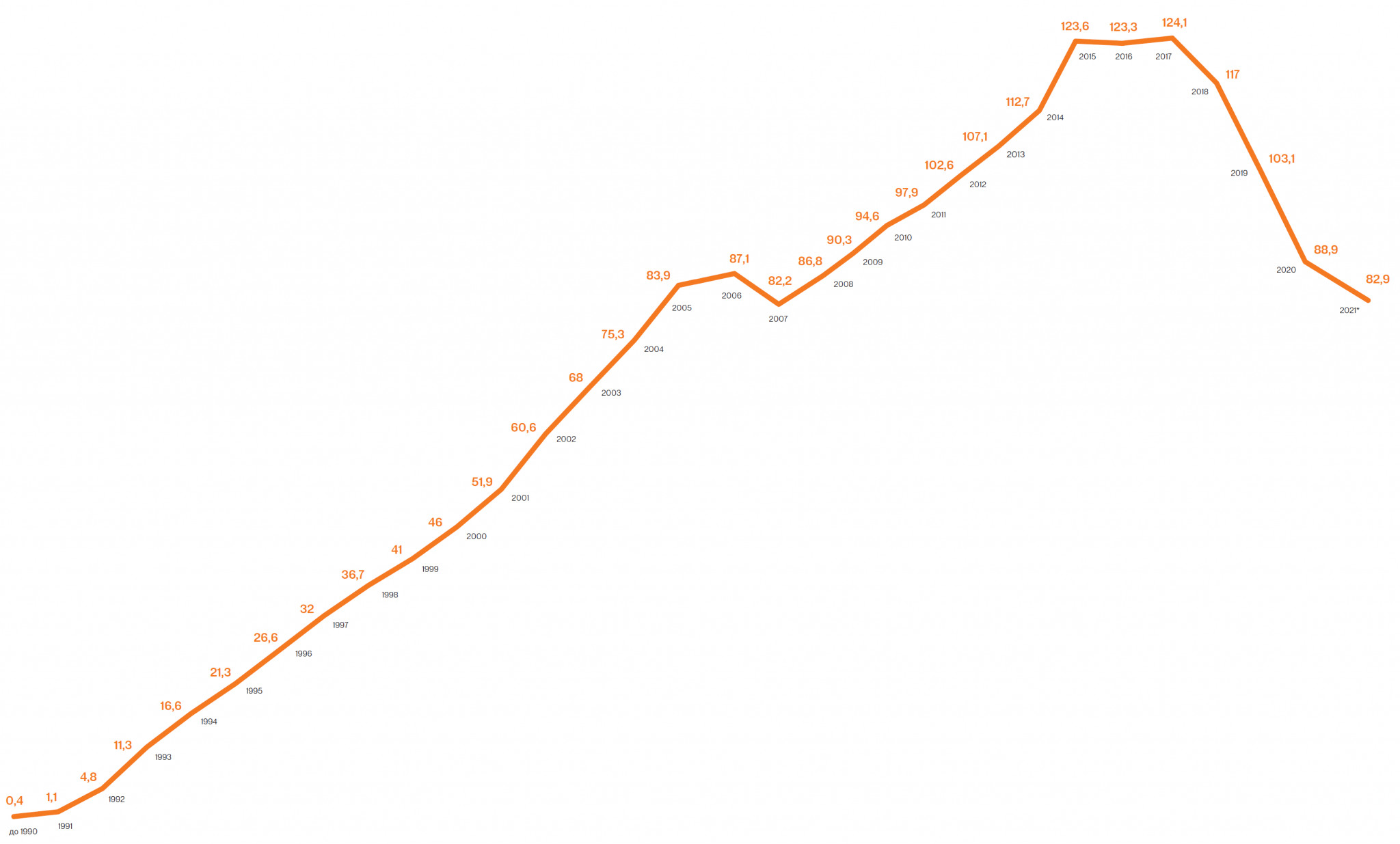 Динамика роста суммарной выручки 50 крупнейших иностранных компаний в России за три года снизилась с 10% до 2%. Это тревожный показатель, но еще печальнее выглядит будущее иностранного бизнеса в нашей стране. По данным банка России, в 2020 году прямые иностранные инвестиции снизились в четыре раза, до $7,2 млрд. Количество проектов, в которые вкладывались иностранные компании, уменьшилось на 26,1%. И не только пандемия в этом виновата. Количество проектов иностранцев в России, по данным EY European, падает с 2017-го и за это время сократилось с 238 до 141.