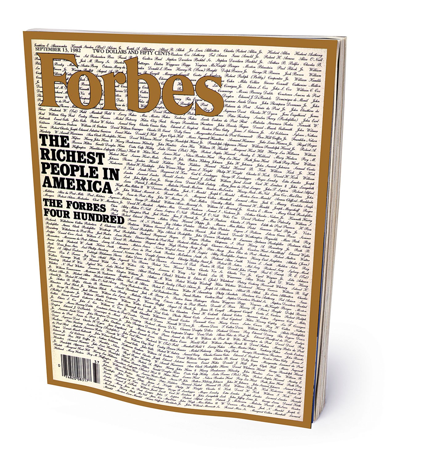 Поначалу затея составить рейтинг богатейших американцев казалась трудно осуществимой и затратной. «Я был настроен скептически», — вспоминал Джеймс Майклз, редактор Forbes в то время. Но год напряженной работы — и 31 августа 1982-го журнал с рейтингом Forbes 400 вышел в свет. Номер раскупили за несколько часов.