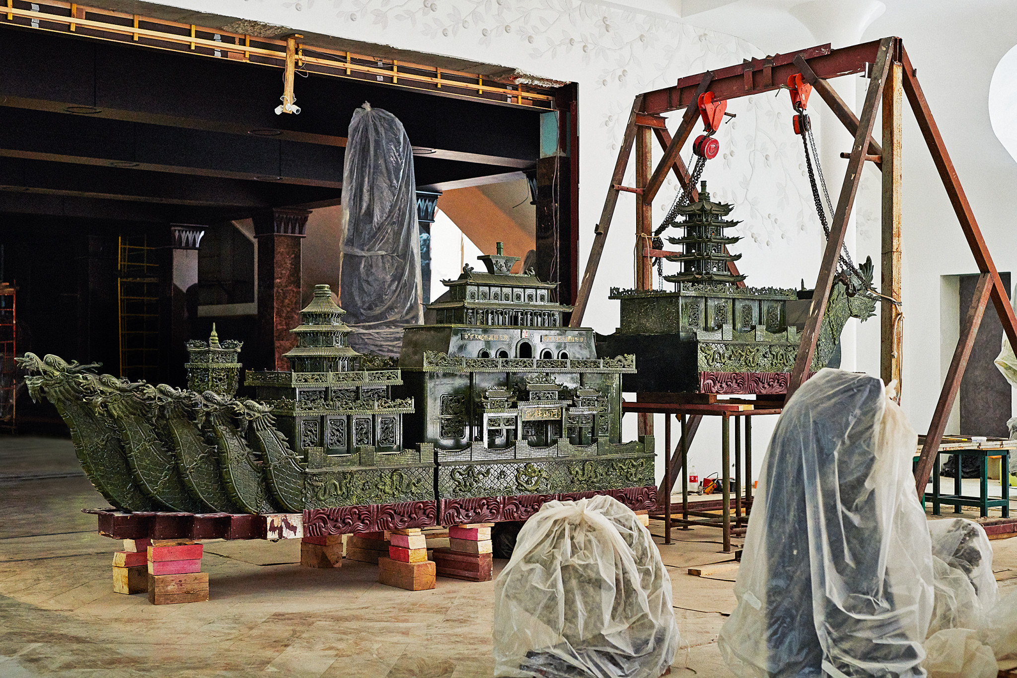 Двадцатитонную резную скульптурную композицию из нефритового монолита Владимир Голубев разыскал во время своей китайской экспедиции в деревне в окрестностях Шэньяна. У местных крестьян полгода ушло на то, чтобы доставить нефритовую глыбу к трассе за 130 км — это расстояние от деревни до ближайшей автомагистрали. Затем ее упаковали, погрузили в трейлер и отправили в Москву, прямиком на Рублевку в собрание Голубева.
