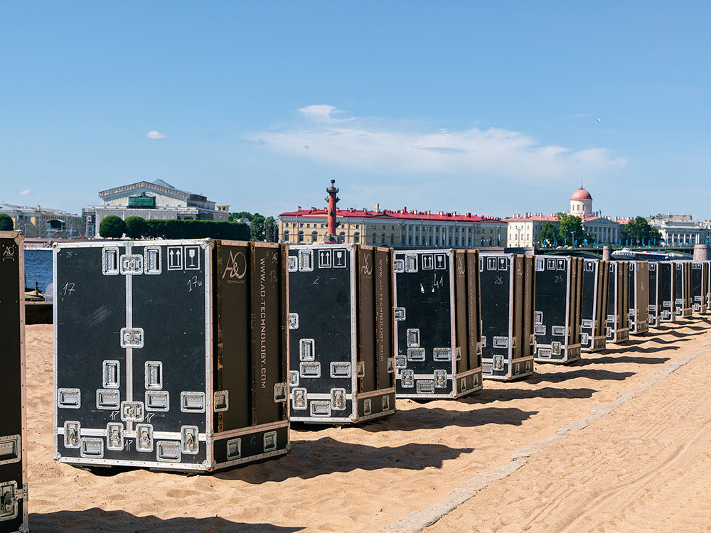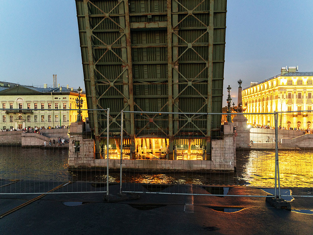 На «Алых парусах — 2021» зрители были, но в ограниченном количестве — только выпускники школ Петербурга под присмотром преподавателей и многочисленных полицейских и сотрудников Росгвардии. Дмитрий Орликов приехал из Москвы в Санкт-Петербург за неделю до шоу и успел к финальной части работ, которые проводила на площадке его команда: монтировала пиротехнику, прожекторы, устанавливала связь и настраивала компьютерные системы. В представлении было задействовано пять основных площадок: Стрелка Васильевского острова, Петропавловская крепость, Дворцовая набережная, баржи с понтонами на Неве и Троицкий мост. Последний — самый сложный объект для создателей шоу. Во-первых, монтаж там ведется без перекрытия движения, поэтому необходимо обеспечить максимальный уровень безопасности. Во-вторых, навешиваемые на разводной мост конструкции должны учитывать множество факторов, например работу противовесов или силу ветра до штормового уровня.