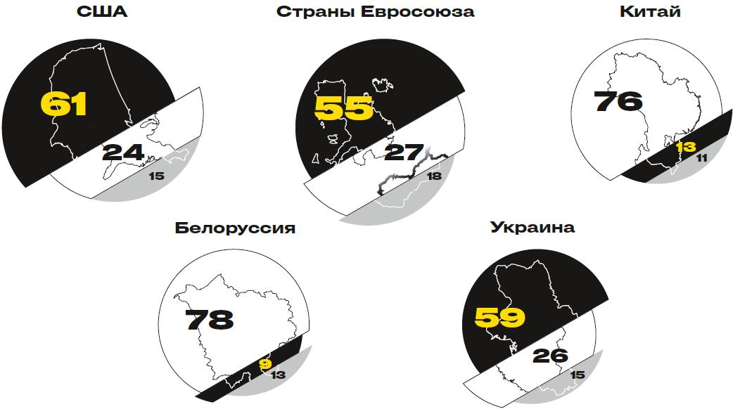 *Все страны по состоянию на май 2017 года, Китай — март 2017 года. Источник: Левада-Центр