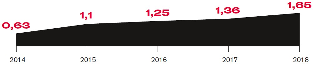 Динамика роста бюджета Единой лиги ВТБ, млн руб.