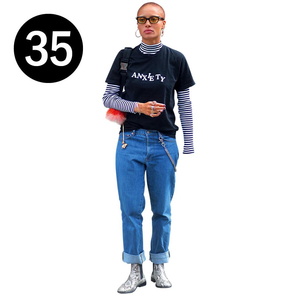 Модель не стесняется говорить о ментальном здоровье с помощью проекта Gurls Talk и надписей на одежде — должен же быть у стритстайловой ярмарки тщеславия хоть какой‑то смысл.