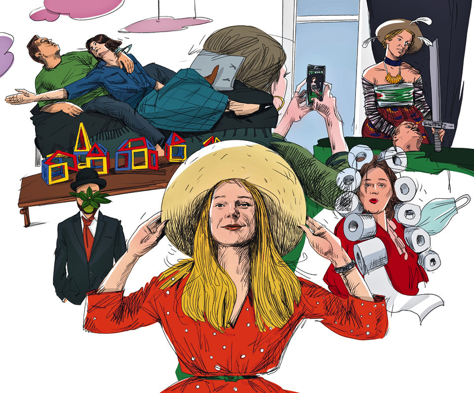 Джоконда в медицинской маске, Офелия на удаленке, боярыня Морозова, соблюдающая социальную дистанцию, — и другие картины эпохи коронавируса, появившиеся благодаря флешмобу «Изоизоляция» Катерины Брудной-Челядиновой.