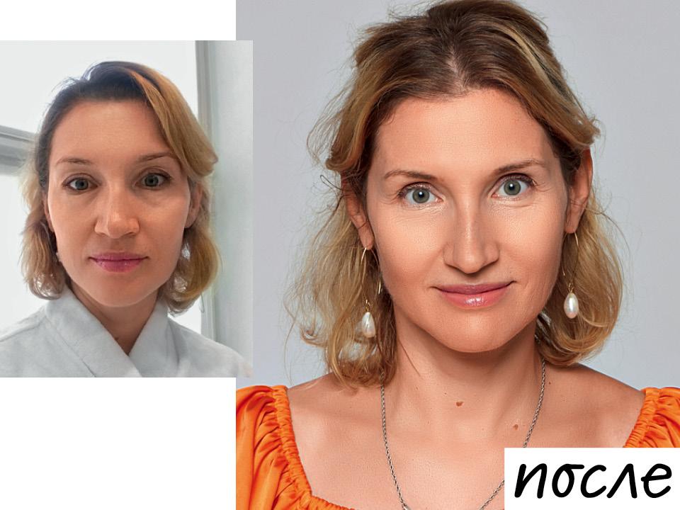 «В последнее время носогубные складки на моем лице стали очень выраженными. У меня жирная кожа, морщин и каких-то особых проблем нет, но носогубки выдавали возраст и придавали лицу уставший, осунувшийся вид. Особенно это было заметно при искусственном освещении — в офисе или в метро. Мой врач Екатерина Химушкина сама излучает красоту и здоровье, и, глядя на нее, хочется совершенствоваться. К тому же она отличный знаток анатомии лица. Предупредила: что хорошо одному, другому может исказить черты лица. Например, в моем случае оказалось, что уколы препарата Yvoire Classic нужно делать только в область складок около носа, а уголки губ оставить нетронутыми, иначе могут образоваться валики — это особенность моего строения лица. Перед процедурой мне нанесли крем-анестетик, так что уколы были вполне терпимыми. Самое неприятное — ощущение пощипывания под кожей во время введения препарата. Тем же препаратом мне исправили и легкую асимметрию губ. После уколов на коже была небольшая краснота, но перед выходом из клиники мне нанесли крем с SPF с тонирующим эффектом, и он ее скрыл. Небольшая отечность появилась ближе к вечеру, а вот губы распухли сильнее. Но оказалось, что отечность — обычное дело после таких инъекций. Она полностью спала к вечеру второго дня. Эффект стал заметен сразу — проблемная зона разгладилась. Повторную процедуру мне рекомендовали сделать не раньше чем через год и пообещали, что эффект от нее будет еще заметнее, так как новая доза препарата ляжет уже на «подложку». Ограничения после укола — две недели не ходить в сауну и солярий, три дня не делать кислотные пилинги и не слишком активно заниматься спортом».