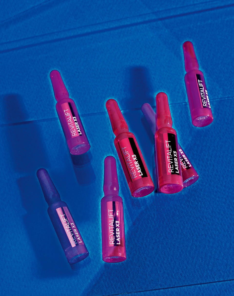 Ампулы с 10%‑ной гликолевой кислотой для сияния кожи «Revitalift Лазер х3», 1067 руб. за 7 штук, L’Oréal Paris.