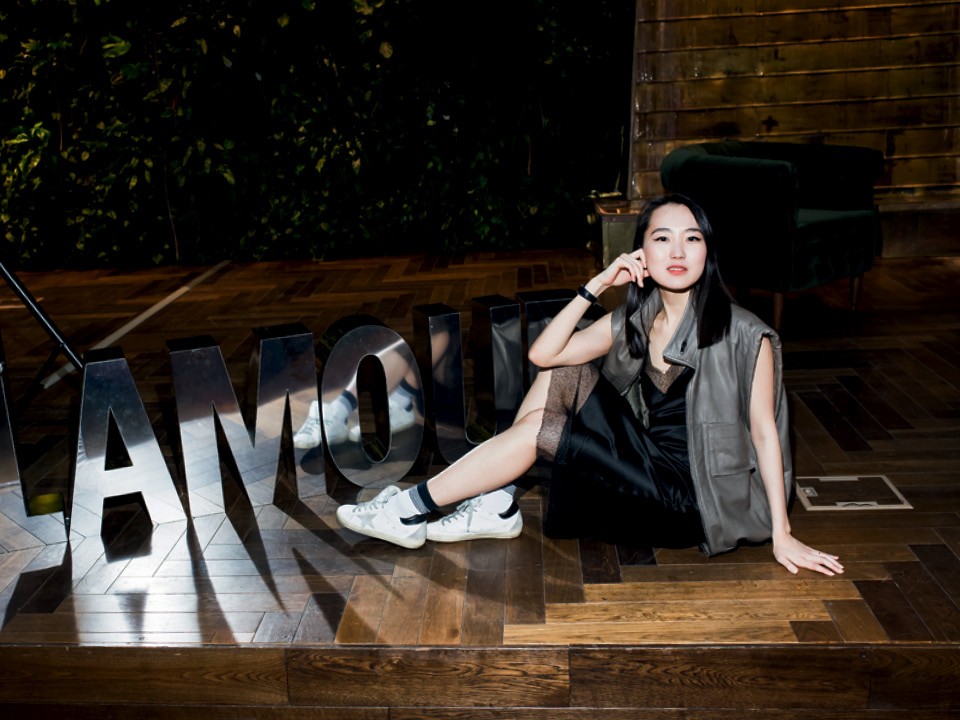 Иляна в жилете Alexander Terekhov, платье Walk of Shame, кроссовках Golden Goose Deluxe Brand, носках H&M и с часами Cartier.