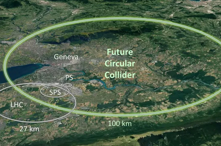 Европейская организация по ядерным исследованиям (ЦЕРН) работает над проектом Будущего кольцевого коллайдера (Future Circular Collider, FCC). Длина его туннеля составит около 100 км. Краса и гордость современной физики, 27-километровый Большой адронный коллайдер (БАК) станет для FCC вспомогательным кольцом, обеспечивающим предварительный разгон частиц.