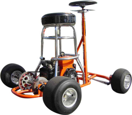 Основное техническое ограничение в этой дисциплине — использование самого настоящего барного стула, никаких стилизаций или адаптаций. Картинговую раму для установки сиденья можно построить самостоятельно, но можно купить готовый кит-комплект — есть несколько фирм, производящих такие вещи в серийном порядке. Средняя рама — например, самая распространенная модель, Transporter калифорнийской компании Mini Choppers Socal — стоит около $400, плюс примерно столько же придется выложить за двигатель. В гонках есть два класса — Lakester с открытыми колесами и Streamliner с закрытыми. Диаметр шин ограничен 25 см, минимальная высота стула-сиденья — 76 см, причем важным правилом является запрет на отрывание ягодиц от сиденья. Настоящий завсегдатай бара вставать не должен!