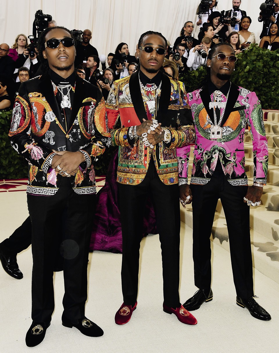 Несвятая троица от мира хип-хопа живет по заветам годящихся им в отцы бойз-бэндов: если уж собирается вместе (у Куэйво, Тейкоффа и Оффсета есть и вполне успешные сольные проекты), то в нарядах добивается максимальной координации. Как, например, на Met Gala, куда музыканты второй год подряд приходят в Versace, Versace, Versace.
