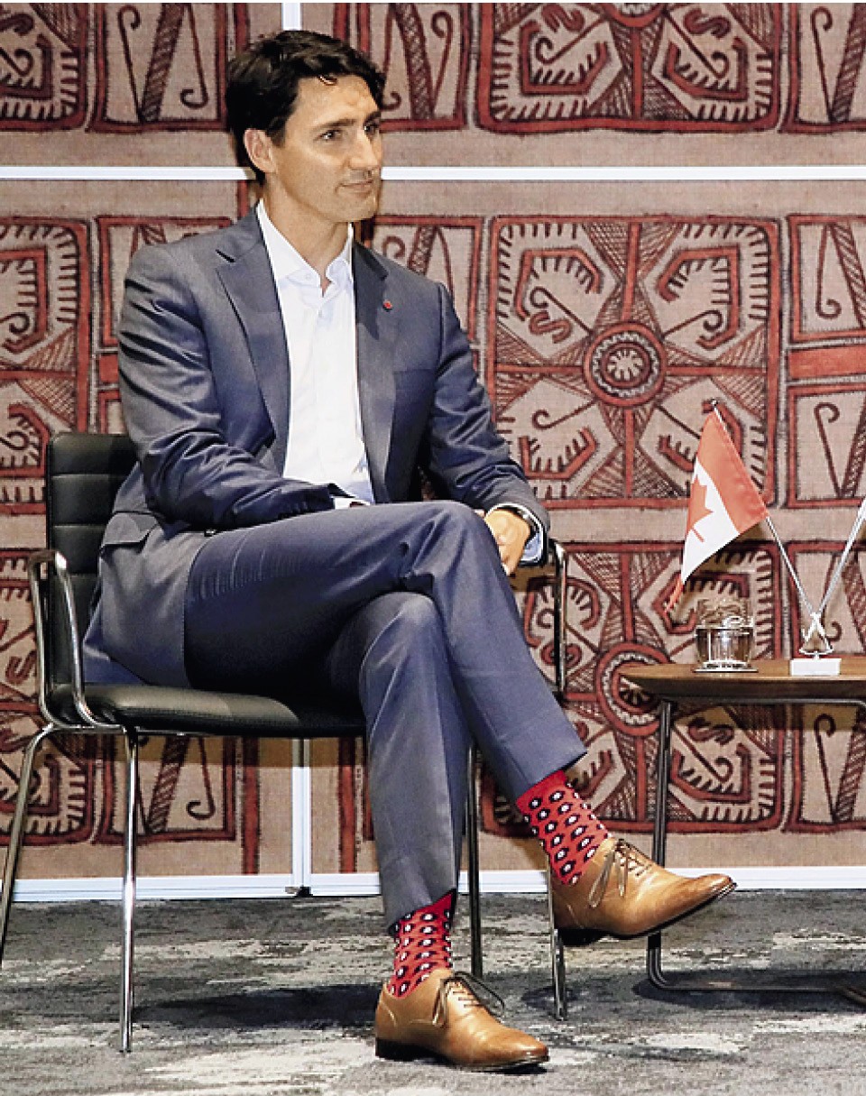 Не только эксцентричной коллекцией носочно-чулочных изделий (она исправно пополняется!) жив гардероб канадского премьер-министра. Не меньшего внимания заслуживает безупречный крой его костюмов; и если уж другие мировые лидеры не стремятся брать на вооружение политические приемы Трюдо, то хоть стремление к правильным пропорциям могли бы позаимствовать.
