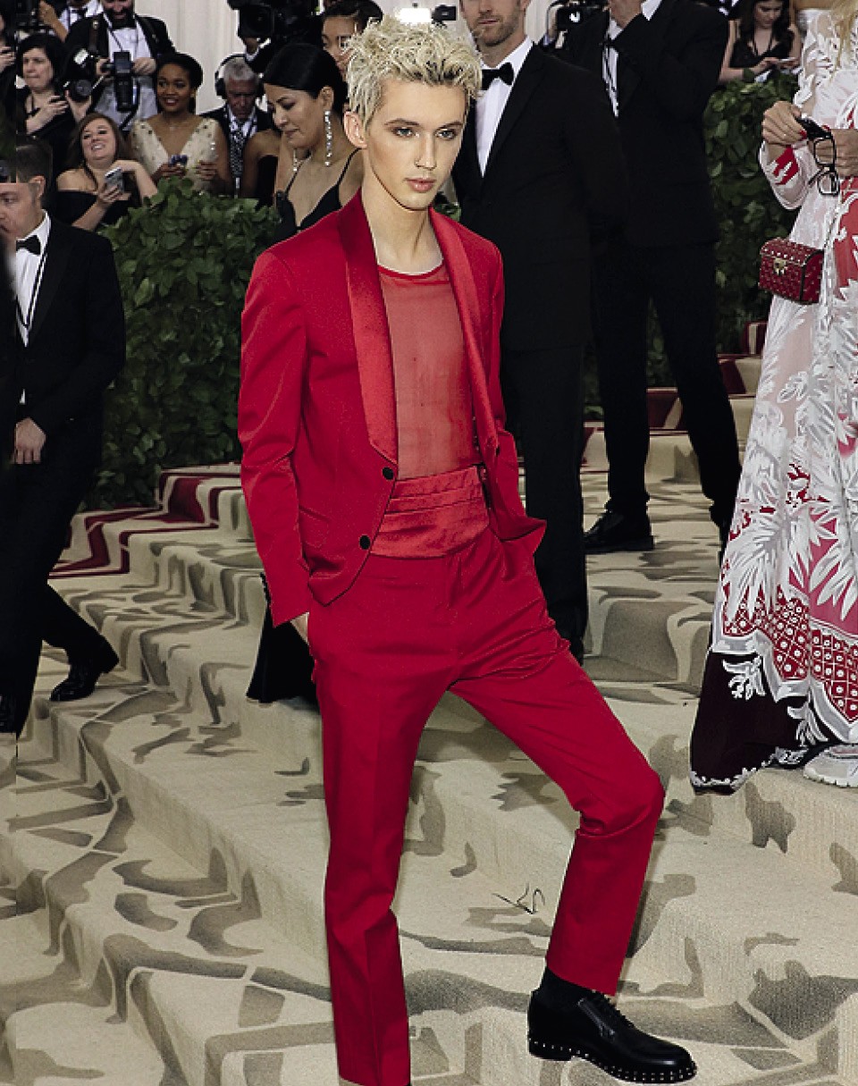 Эльфийской внешности певец (а с недавних пор еще и актер) одевается не в пример другим поп-звездам сдержанно, но при этом не пресно. Да и вообще, как показал опыт Бала Института костюма, куда Трой пришел в алом Valentino, блондин запросто может поддать огонька.