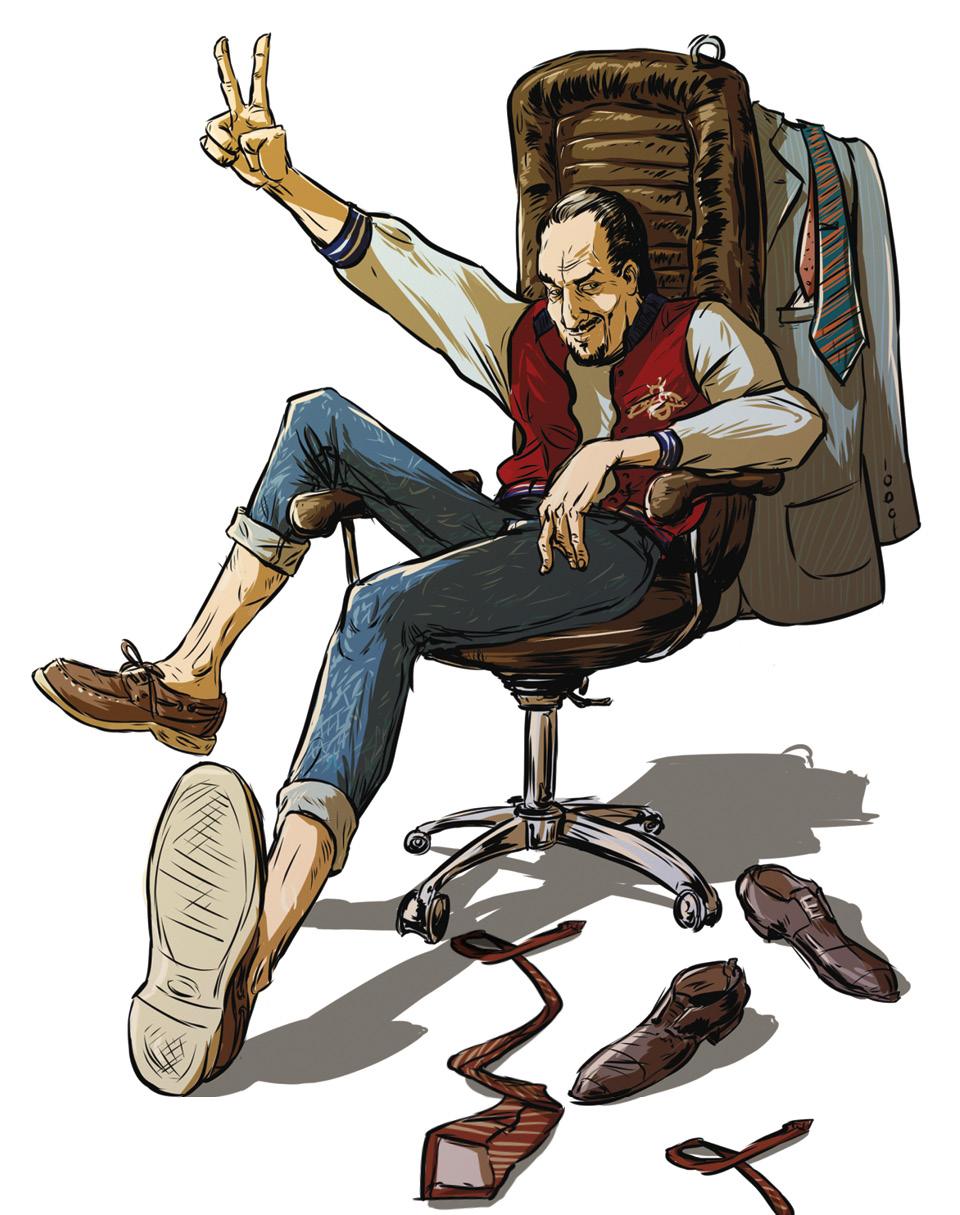 Нынче все иначе: я ношу костюмы-тройки в полоску, дорогие, сшитые на заказ рубашки и тупоносые ботинки, начищенные до такого блеска, что моя жена однажды воспользовалась одним из них в качестве зеркала, решив поправить макияж в такси. Выгляжу ли я старше своих лет? Вероятно. Но пусть я лучше буду похож на банковского клерка, чем на тридцати- или, тем паче, сорокалетнего креакла, который