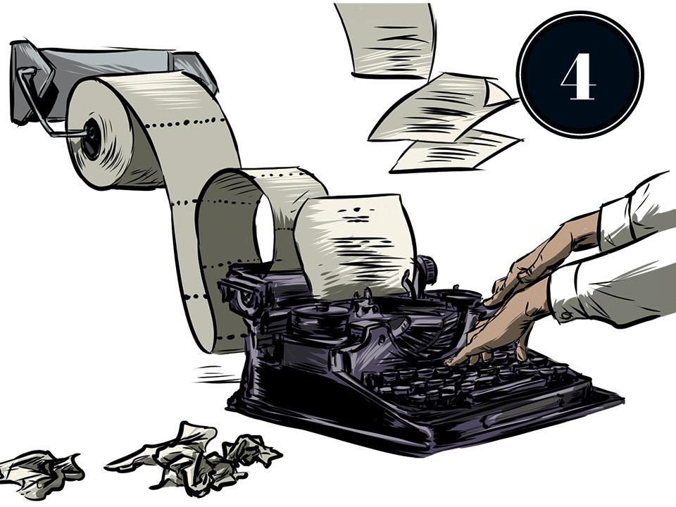 «Я всегда говорил себе: относись к этому как к работе с девяти до пяти. Если у тебя жесткий рабочий график, ты просто идешь и работаешь, и неважно, хорошо ли тебе в этот день. Я могу каждый день садиться за стол и выдавать дневную норму. Просто не даю себе разрешения уклоняться».