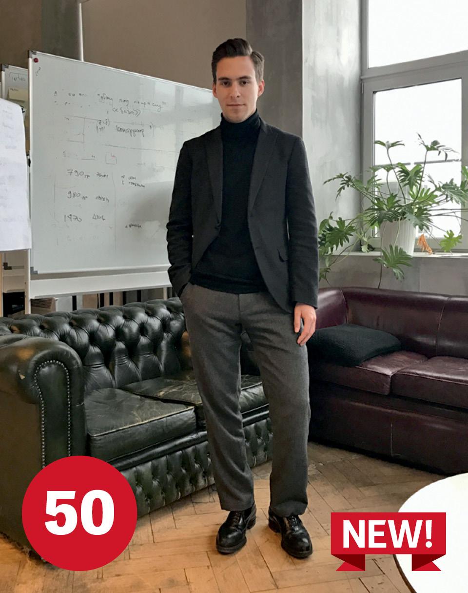 У ведущего телепередачи «Орел и решка» есть все основания быть на этих страницах: молод, хорош собой. При таких данных грех не попасть в список, однако призываем его и дальше совершенствовать свой гардероб, иначе в следующем году одних молодости и красоты может оказаться недостаточно.