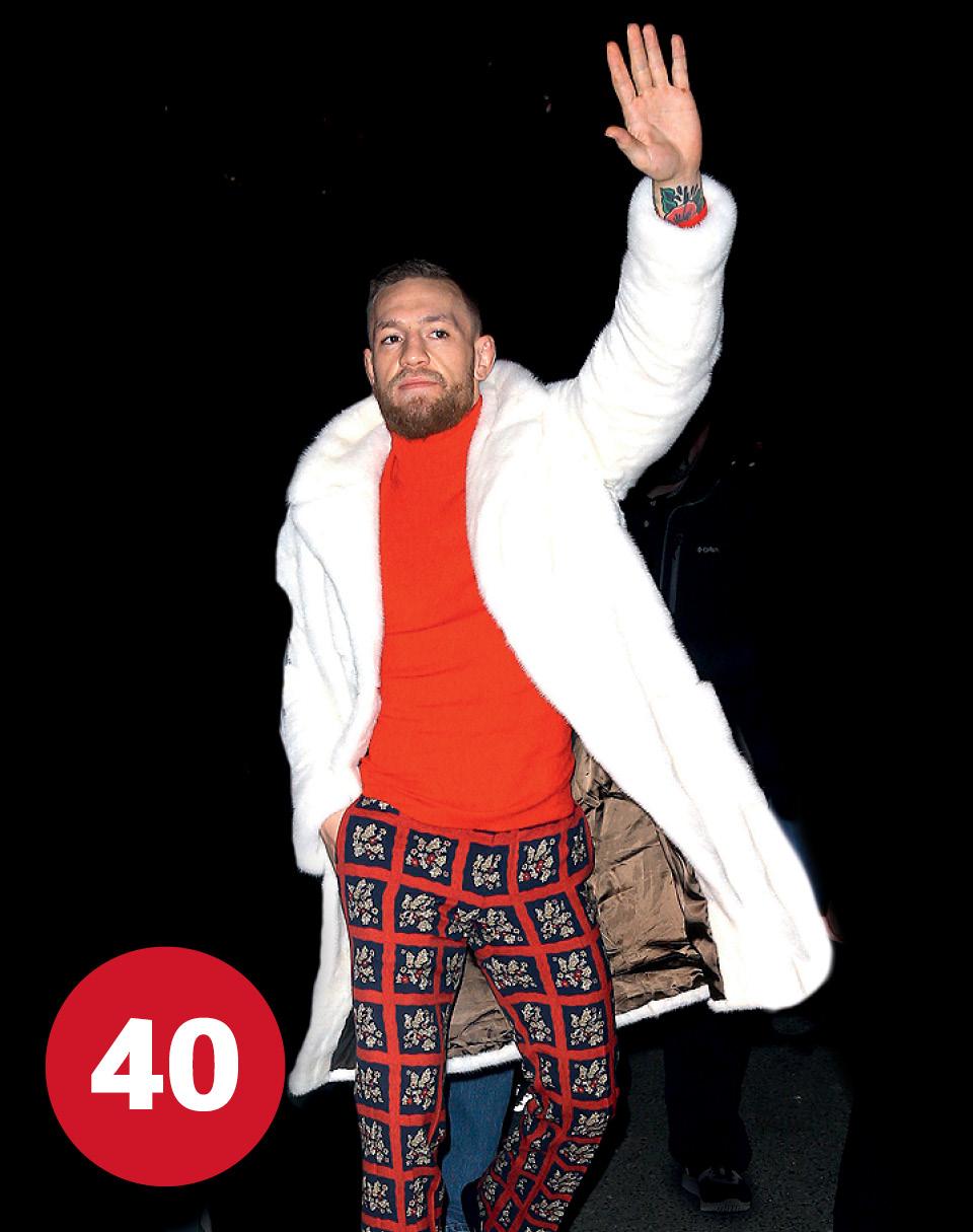 Специалист по смешанным боевым искусствам неплохо поднаторел и в искусстве смешивать вещи: белоснежные брюки носит с зеленым поло и мокасинами Louis Vuitton из кожи питона, шубу — с лоферами Gucci и практически пижамными брюками. Хотя визитная карточка чемпиона — все-таки тройки David August, нокаут в мире костюмов.