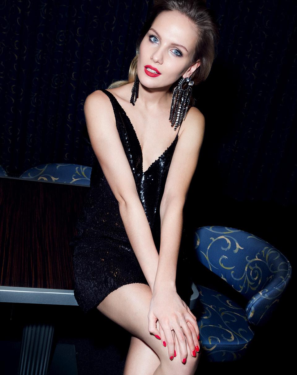 Платье из шелка, расшитое пайетками, Alexander Terekhov; металлические серьги со стразами, Erickson Beamon.