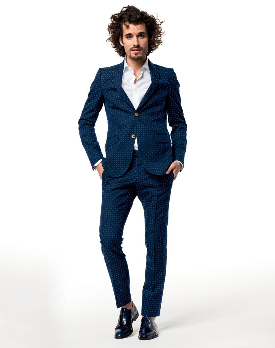 Костюм из плотного хлопка, Gucci; хлопковая рубашка, Van Laack; оксфорды из кожи, Fabi.