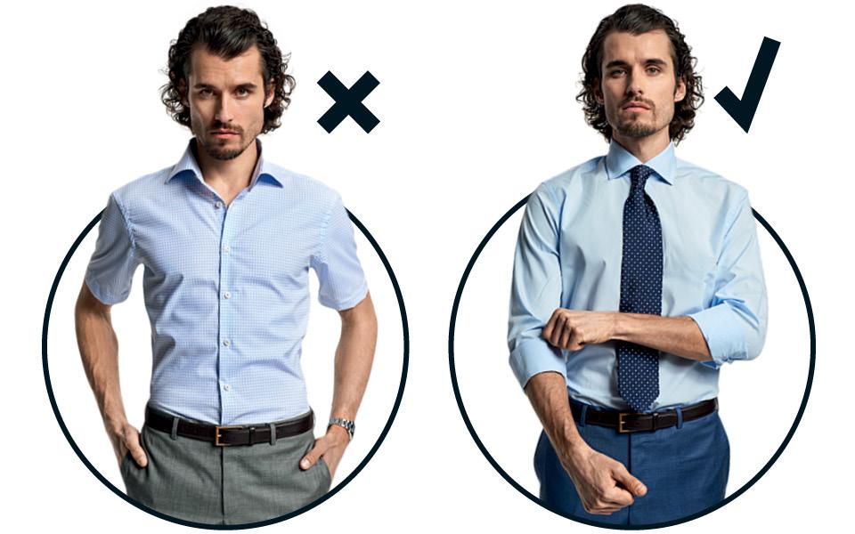 Рубашка с короткими рукавами, без которой в южных широтах вряд ли удастся выжить, в средней полосе считается моветоном. Здесь предпочитают рубашки с длинными рукавами, которые в жаркие деньки закатывают по локоть — но не выше.