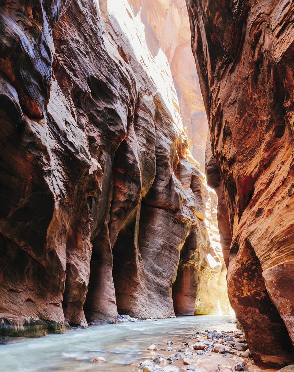 Песчаник навахо окрасил национальный парк Зайон (штат Юта) в розово-красные цвета. Самая удивительная часть этого марсианского пейзажа — глубокий каньон, который когда-то прорезала река Вирджин. Через него и проложен 26‑километровый пеший маршрут Нэрроуз. Пройти его можно за день или два без всякой подготовки. Всего же в парке Зайон 160 километров туристических троп.