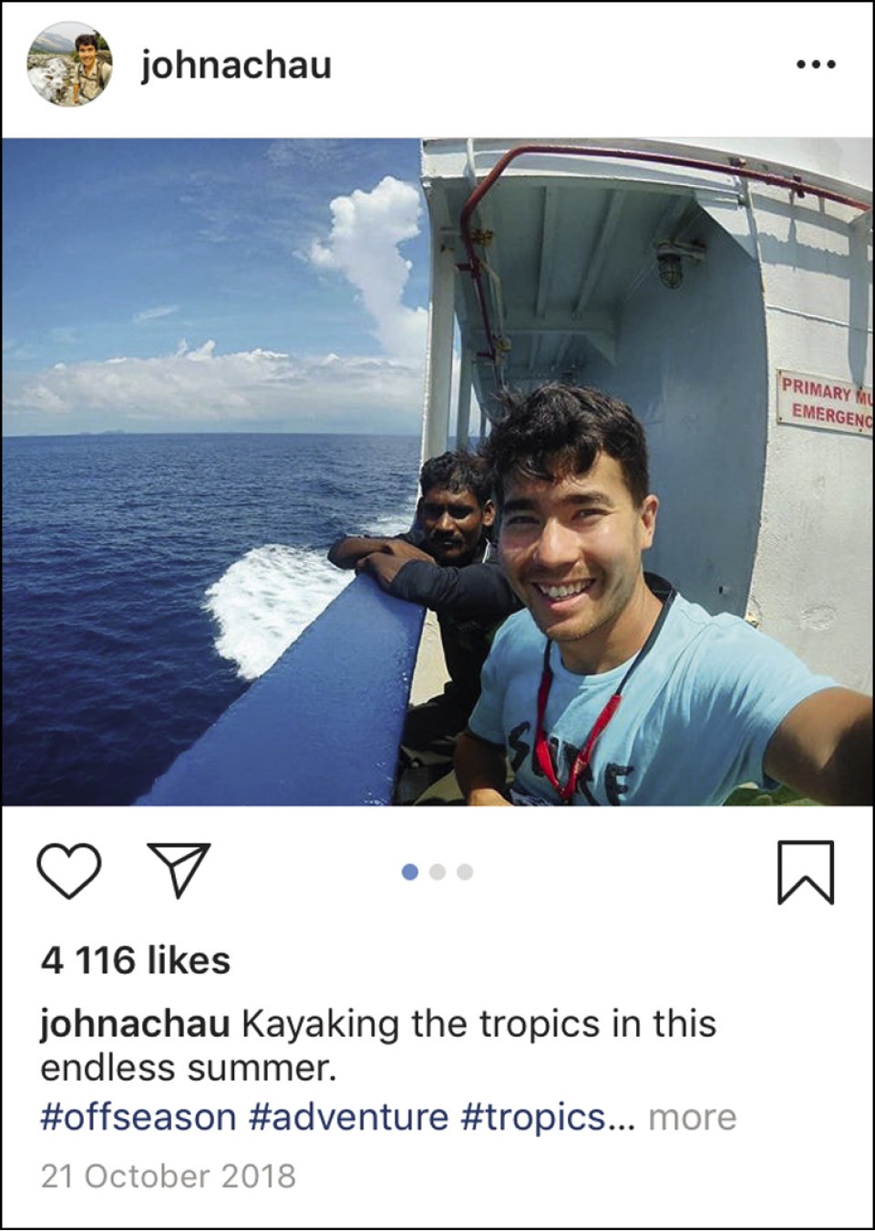 Как-то, вернувшись домой с каникул, Чау наткнулся на сайт JoshuaProject.net, где опубликован перечень народностей, не познавших учение Христа, и обнаружил в нем сентинельцев. Следом Чау открыл Google Maps, нашел затерянный в океане Северный Сентинел, построил до него маршрут и решил, что обязательно принесет на эту землю благую весть. Его отец Патрик Чау слышал, что Джон считает эту миссию своим призванием. Позже Патрик писал мне: «Я надеялся, что Джон успеет повзрослеть раньше, чем эта фантазия обернется для него бедой».